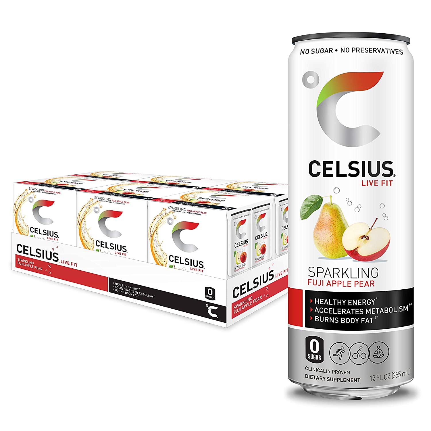 Celsius Essential Energy Drink 12 Fl Oz Sparkling Fuji Apple Pear Pack Of 24 Walmart Com