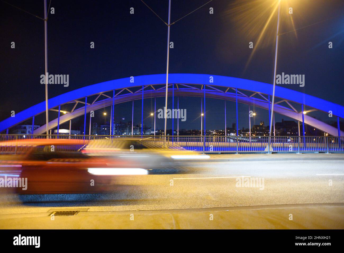 Mageburg Deutschland 18th Februar 2022 Autos Fahren Uber Eine Elbbrucke Wenn Die Hauptverkehrszeit Beginnt Auf Einen Sturmischen Tag Folgte Eine Ruhige Nacht In Der Region Rund Um Die Hauptstadt Sachsen Anhalt Aber So